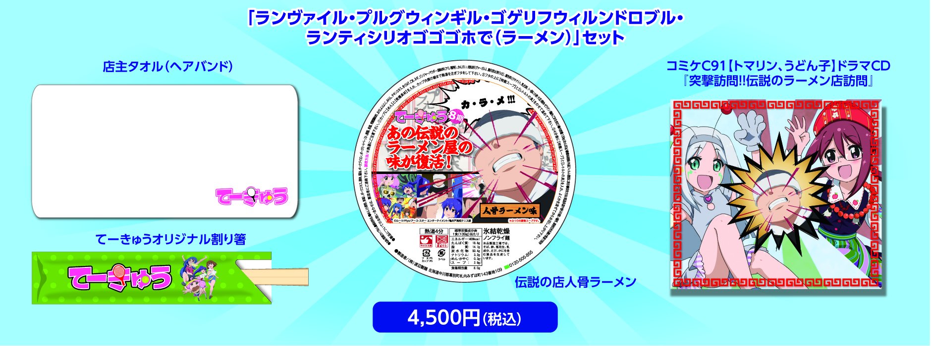 Uzivatel Tvアニメ てーきゅう 公式 Na Twitteru 注意 舌をかまないでね ランヴァイル プルグウィンギル ゴゲリフウィルンドロブル ランティシリオゴゴゴホで ラーメン セット 略して C91 てーきゅうセット 税込4 500円